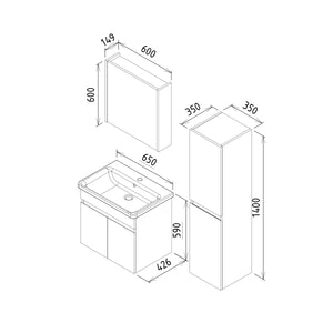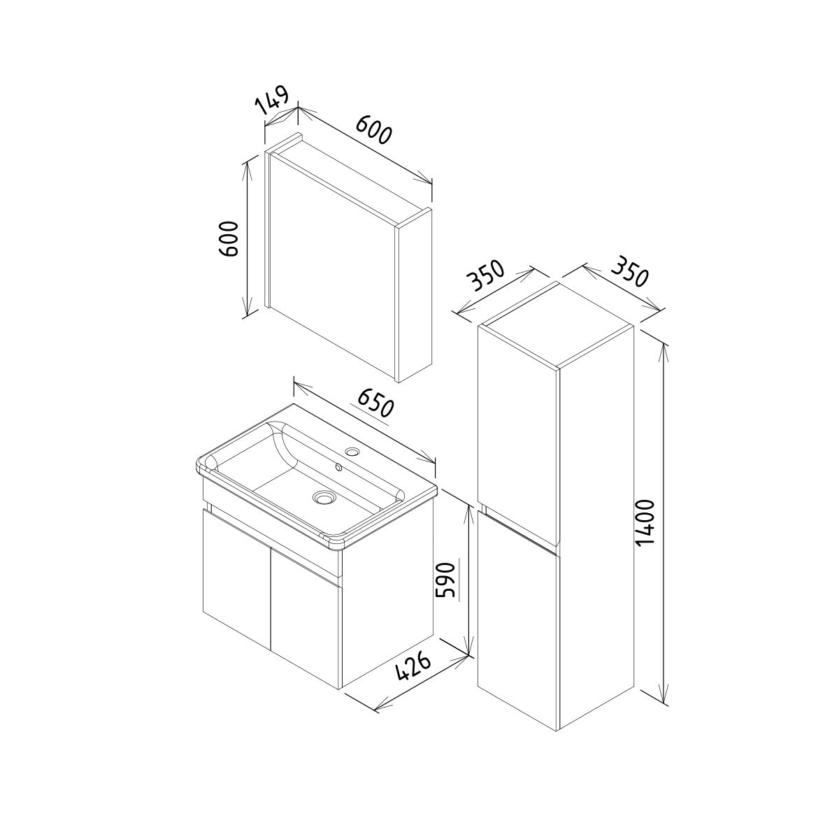 Ürün İçeriği: Lavabolu Alt Dolap, Aynalı Üst Dolap ve Boy Dolabı