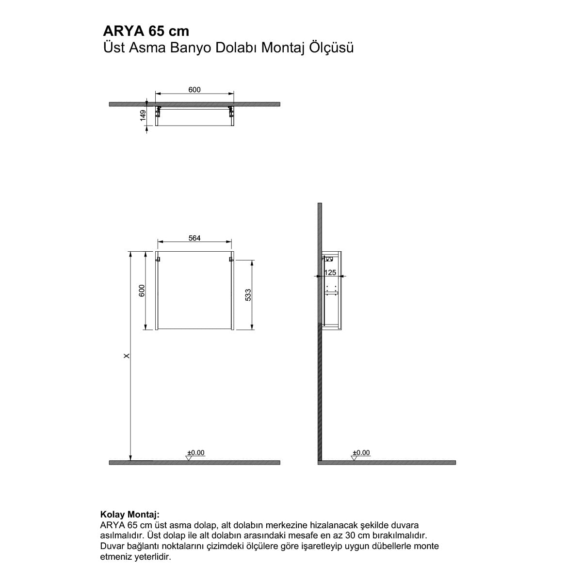Kolay Montaj: Dolaplar montajlı şekilde gelir; duvara sabitlemek için sadece bir matkap kullanmanız yeterlidir. Duvar askı aparatı, raflar ve vidalar pakete dahildir.