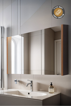 Aynalı Banyo Dolabı 3 Kapaklı, Ceviz 8070