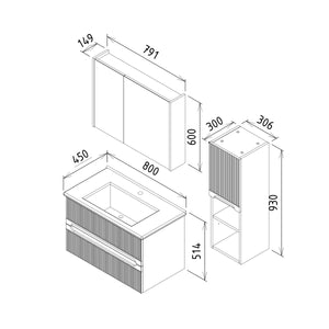 Ürün İçeriği: Lavabolu Alt Dolap, Aynalı Üst Dolap ve Boy Dolabı