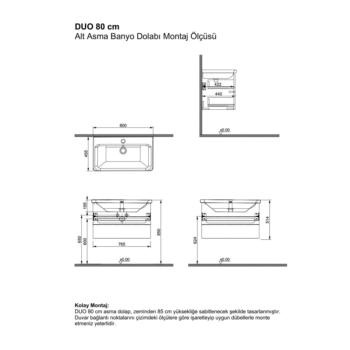 Kolay Temizlik: Duvara monte tasarımı sayesinde zeminde temizlik kolaylığı sunar.
