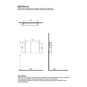 Kolay Montaj: Dolaplar montajlı şekilde gelir; duvara sabitlemek için sadece bir matkap kullanmanız yeterlidir. Duvar askı aparatı, raflar ve vidalar pakete dahildir.