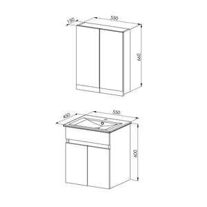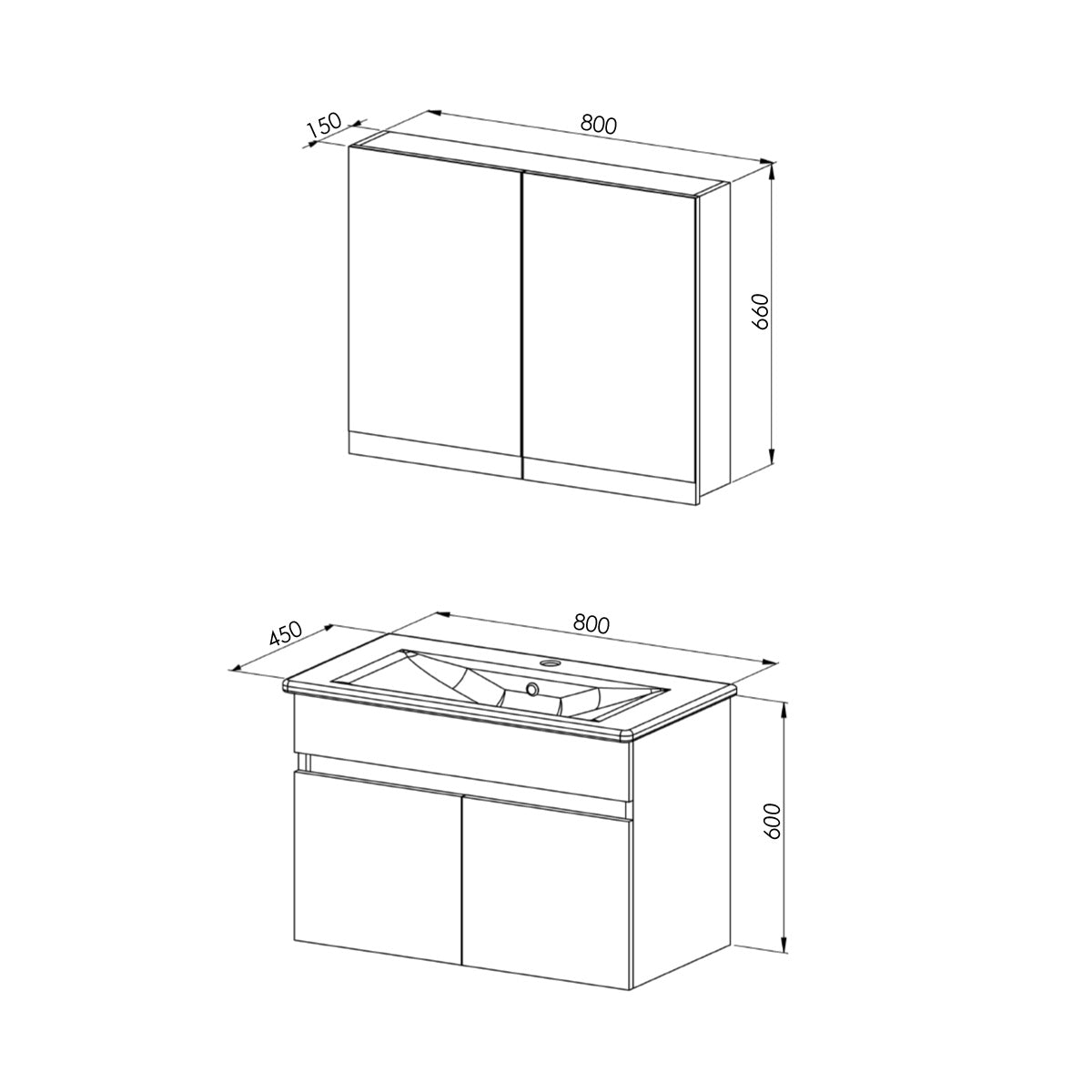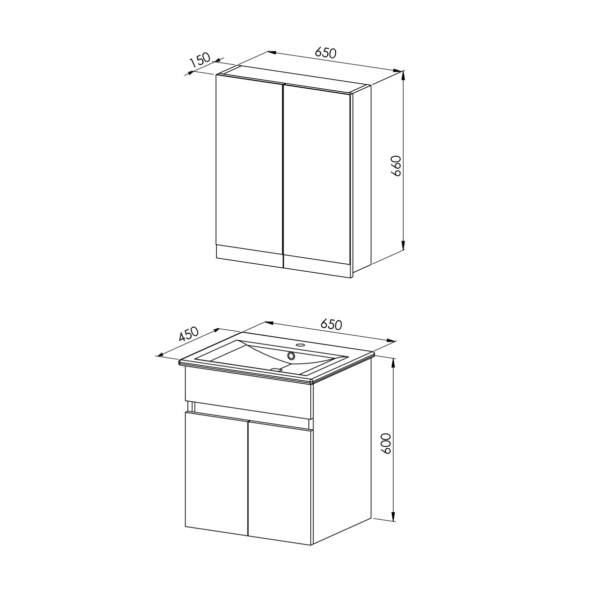 Ürün İçeriği: Lavabolu Alt Dolap, Aynalı Üst Dolap ve Boy Dolabı