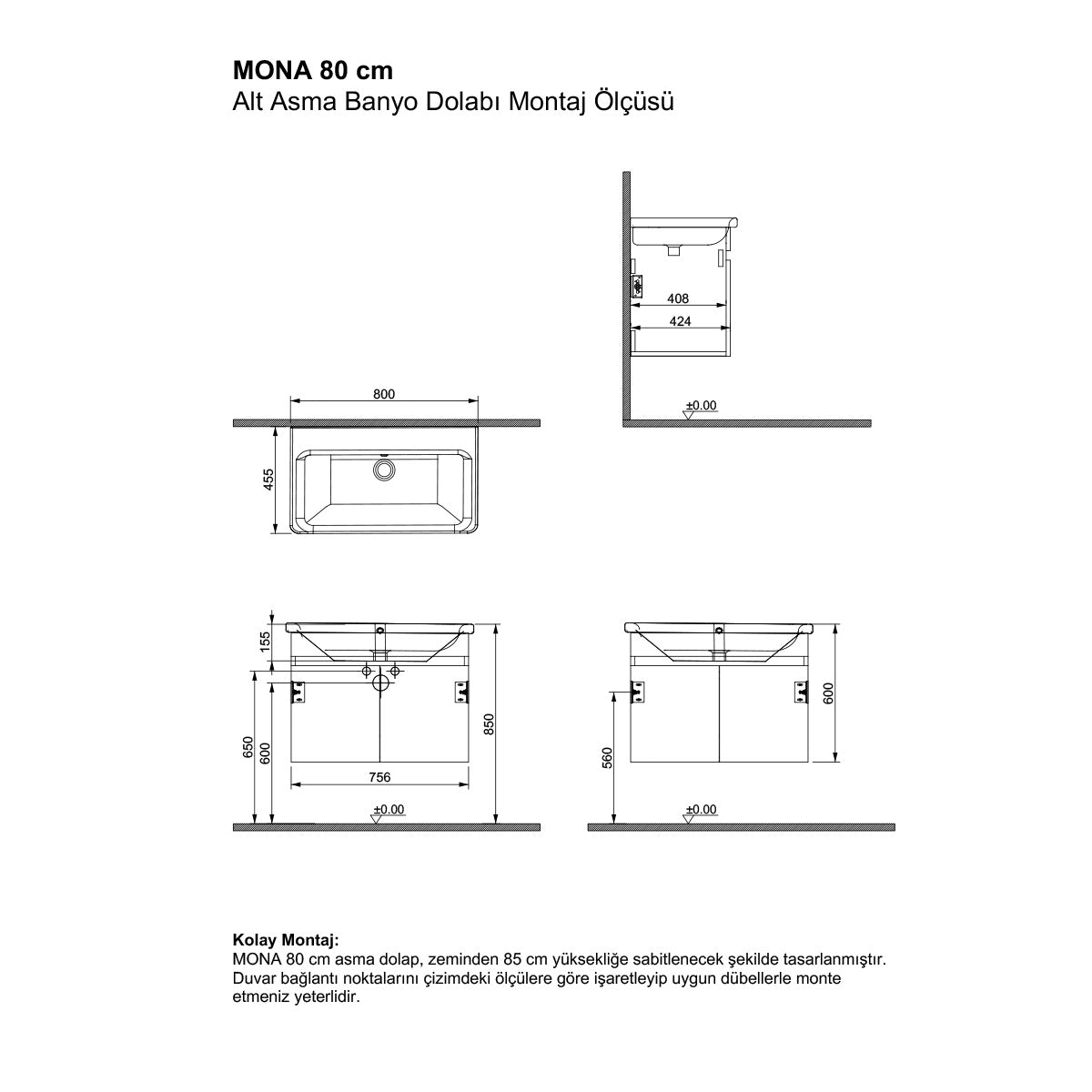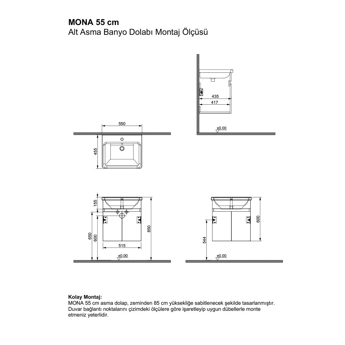 Kolay Temizlik: Duvara monte tasarımı sayesinde zeminde temizlik kolaylığı sunar.