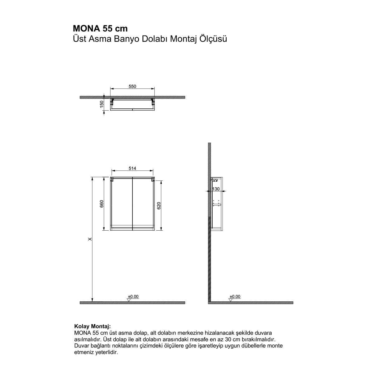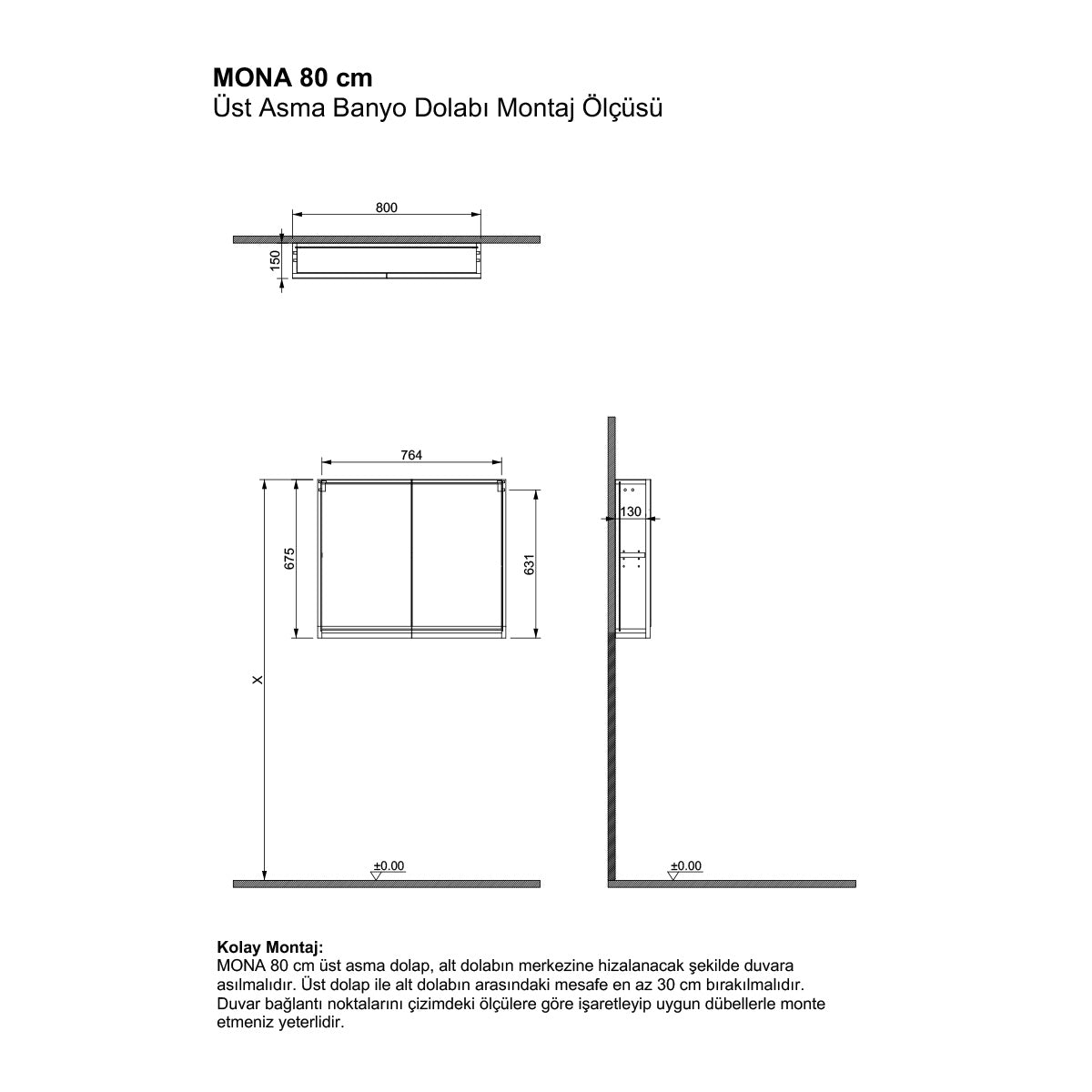 Kolay Montaj: Dolaplar montajlı şekilde gelir; duvara sabitlemek için sadece bir matkap kullanmanız yeterlidir. Duvar askı aparatı, raflar ve vidalar pakete dahildir.