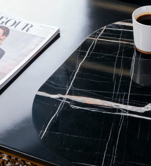 Mermer görünümlü yüzeyi sayesinde kahve sunumlarından dergi ve aksesuar düzenlemeye kadar pek çok alanda estetik bir kullanım sağlar. Minimal ve modern tasarımı, ev ve ofis dekorasyonuna zarif bir dokunuş katar.